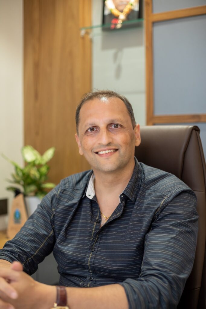 The cabin designed for Mr. Kedar Ranade is a refined blend of elegance, functionality, and quiet authority. A spacious work desk anchors the room, offering both comfort and efficiency, while thoughtfully placed visitor seating maintains a sense of formality without feeling intimidating. Soft lighting, integrated storage, and subtle display niches add depth and character, reflecting years of experience and legacy. Green elements bring balance and freshness, lending the cabin a composed, welcoming feel.